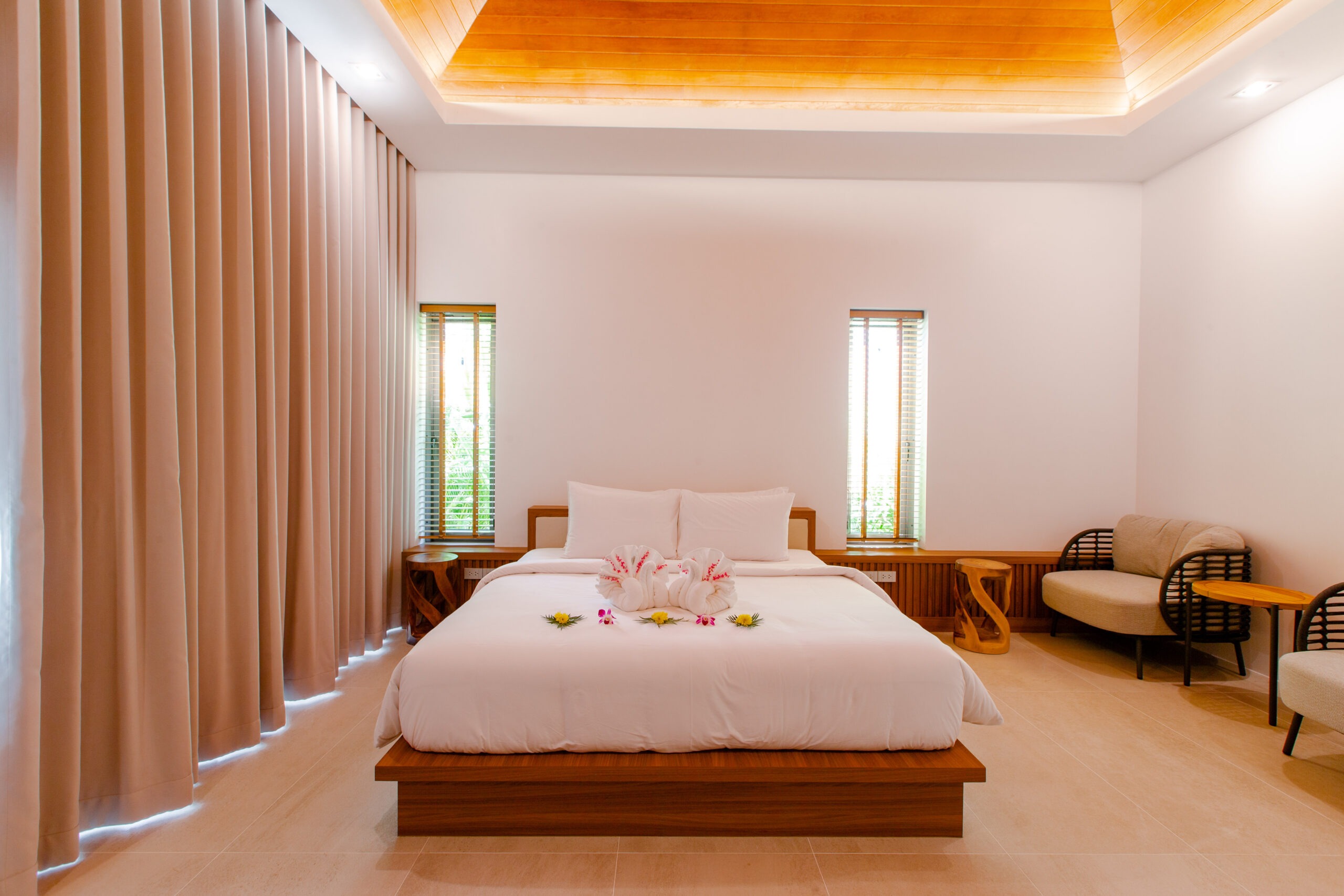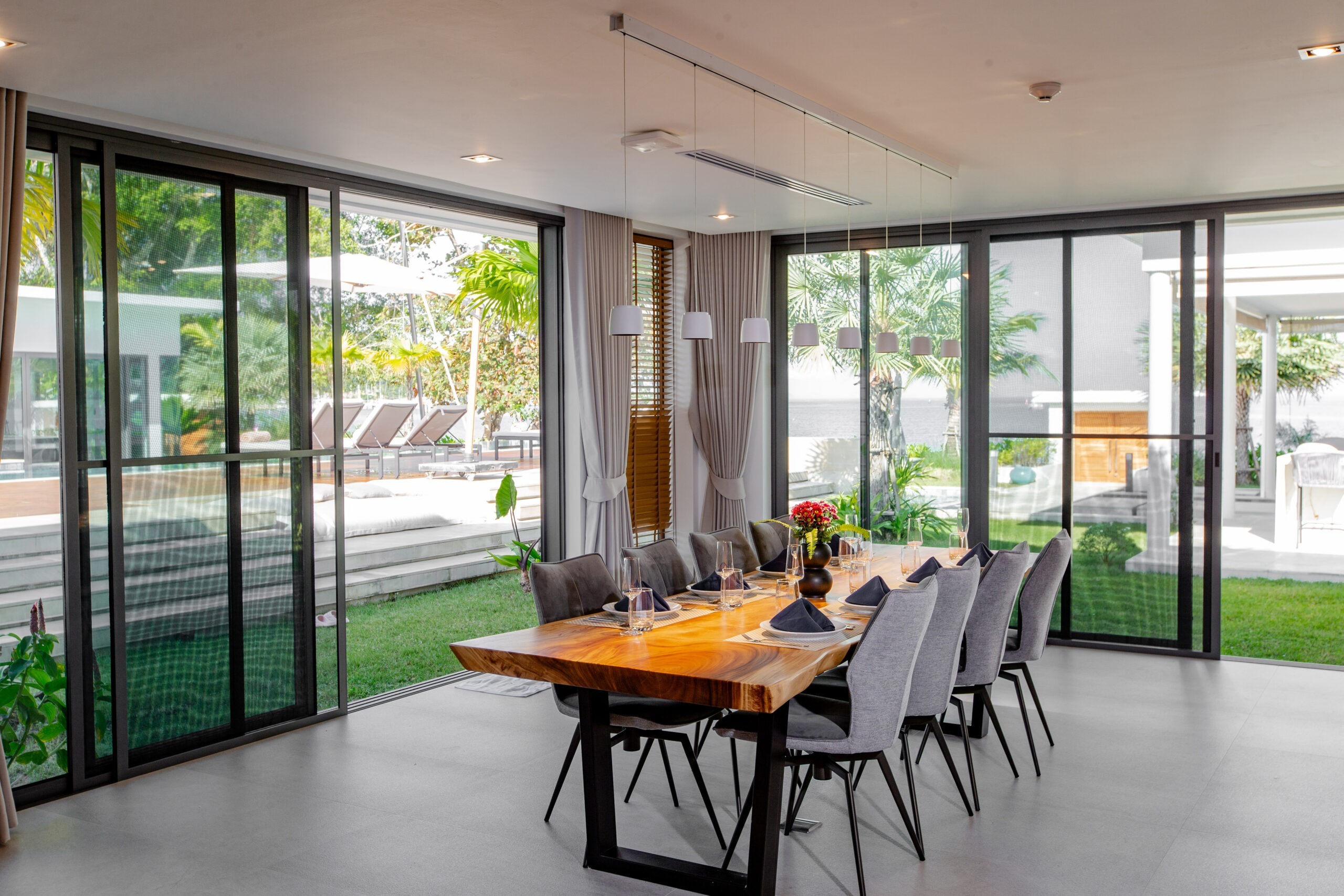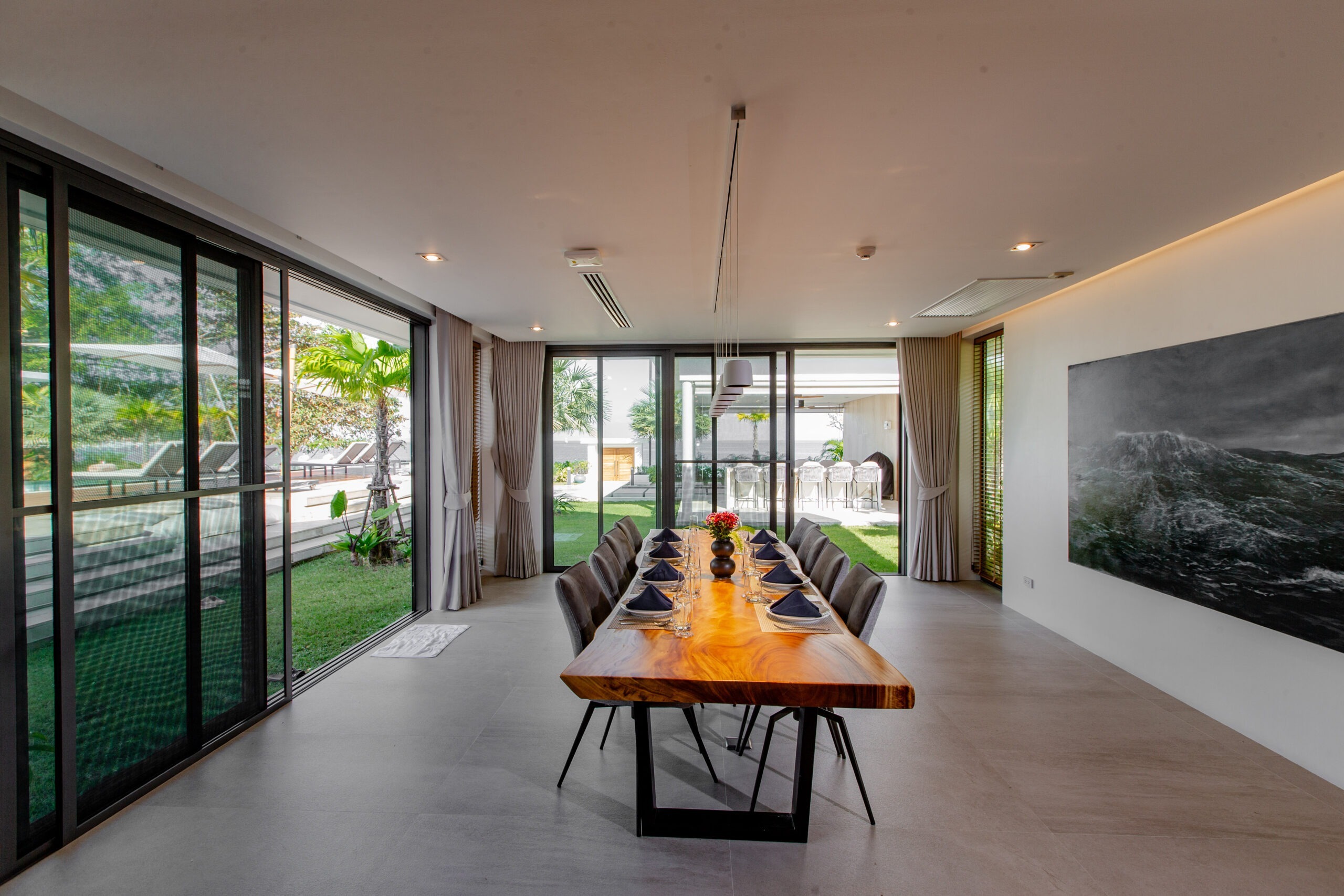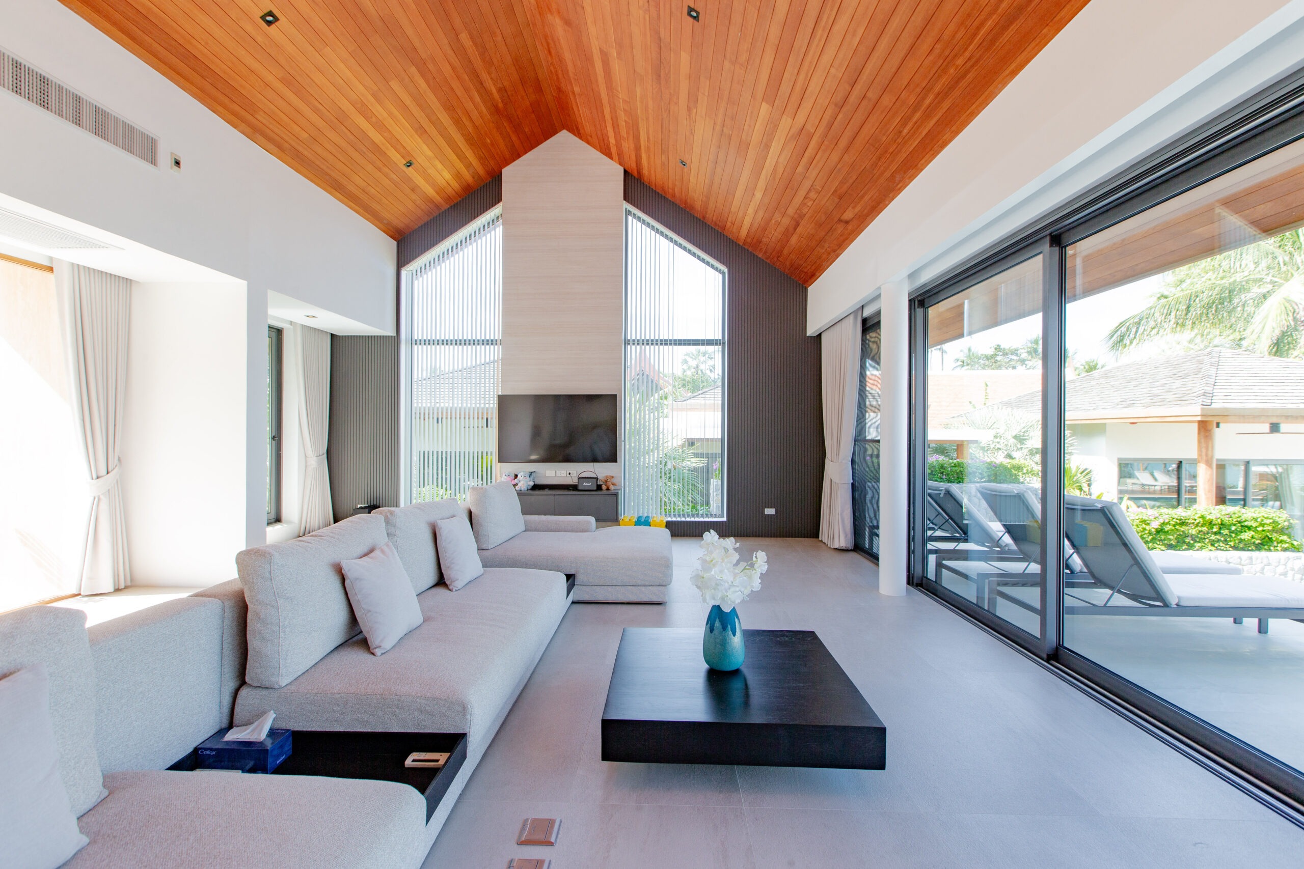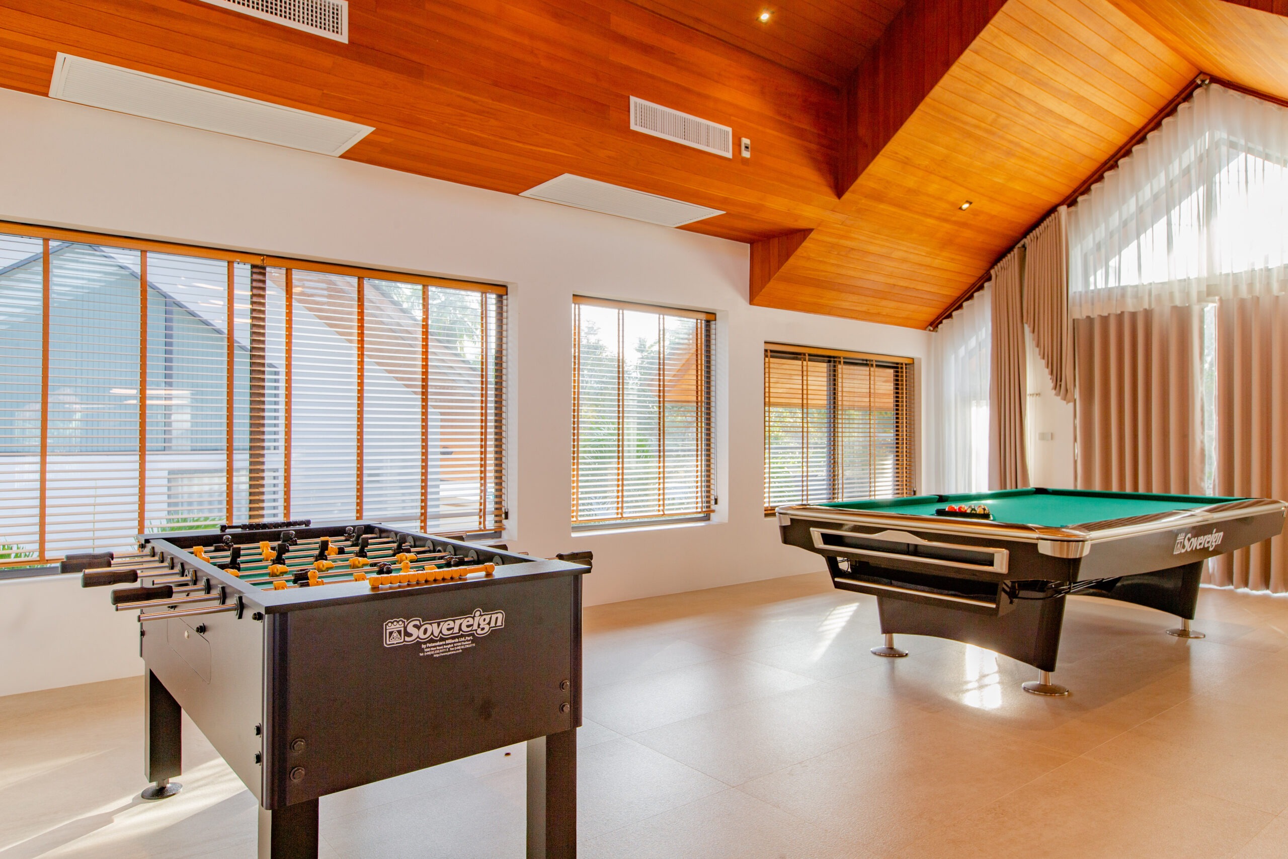 Step into a serene sanctuary where warm natural light dances beneath high-vaulted timber ceilings, creating an atmosphere of soft, airy comfort. Sink into our oversized premium sofa for a blissful afternoon overlooking the pool, or share a cozy movie night with your loved ones in the heart of the villa. With a private pool table nestled within this tranquil space, every moment is a delightful blend of peaceful relaxation and playful joy—making you feel perfectly at home in the lap of luxury.
