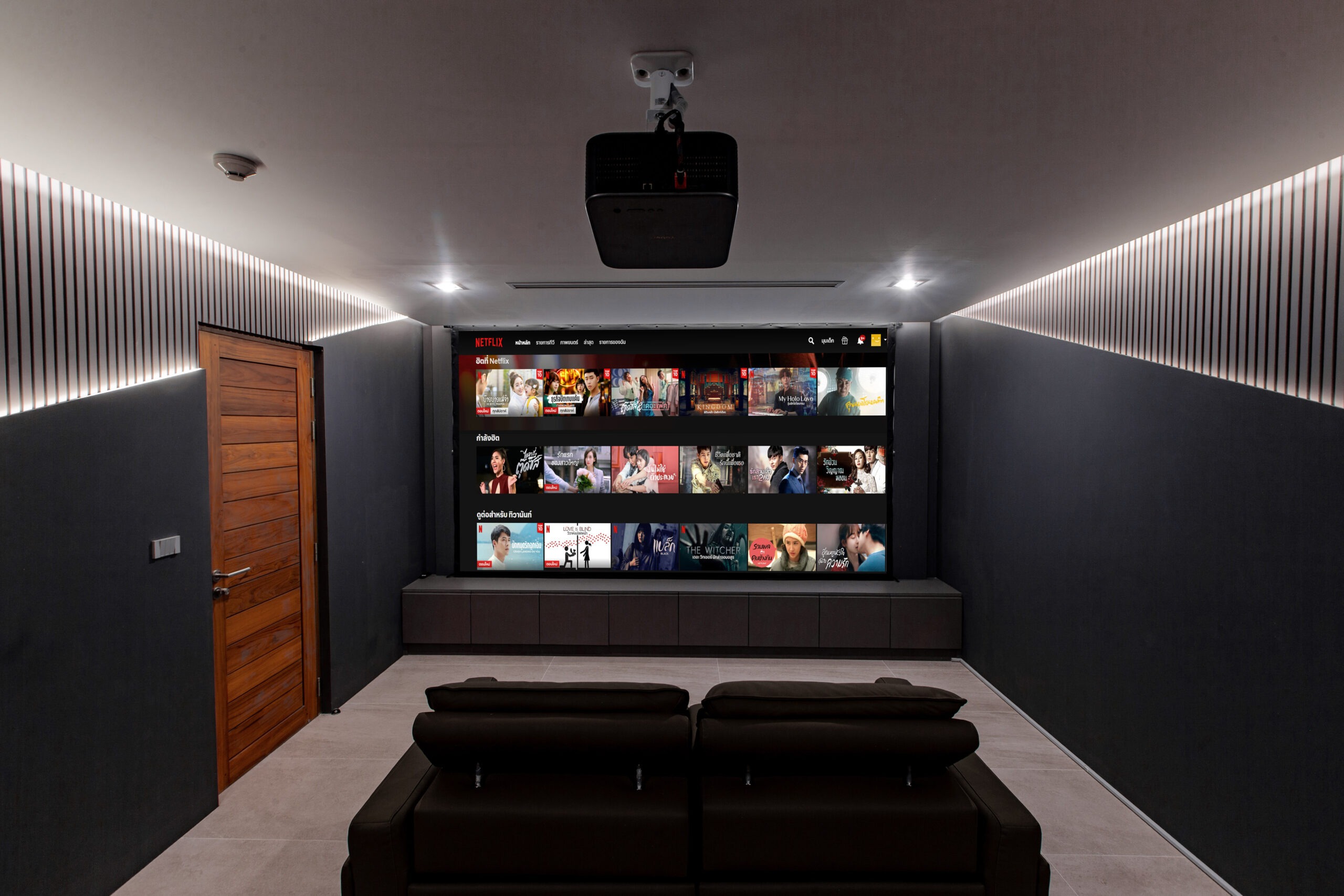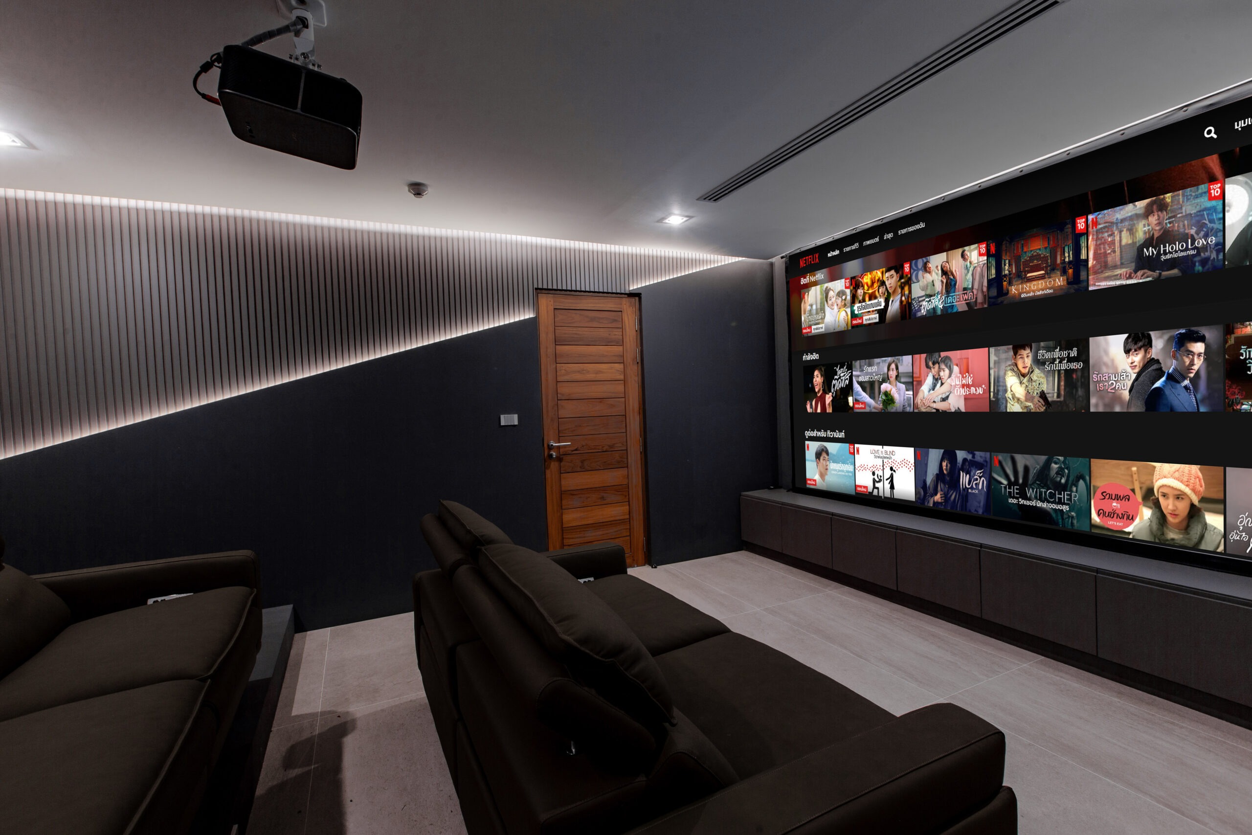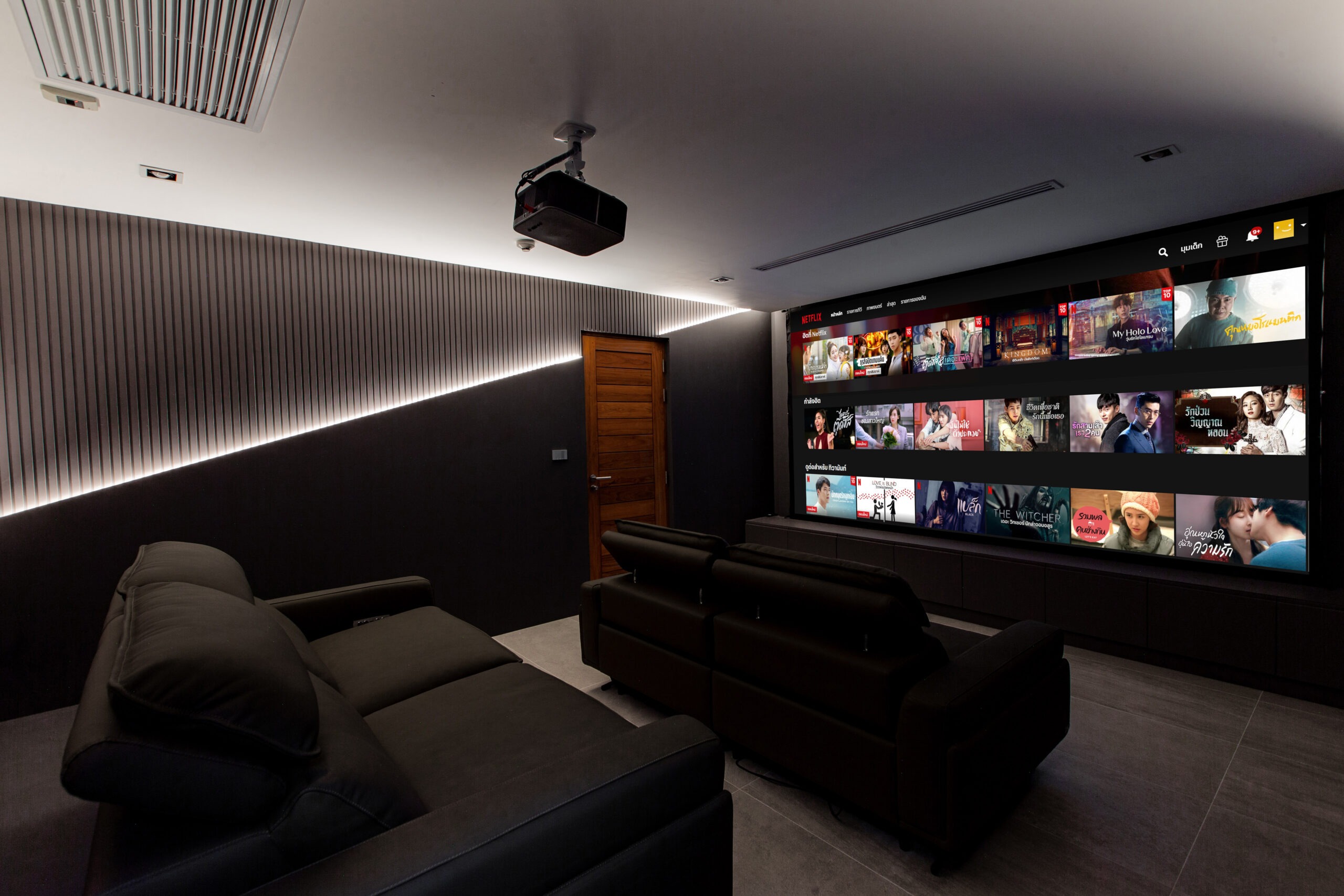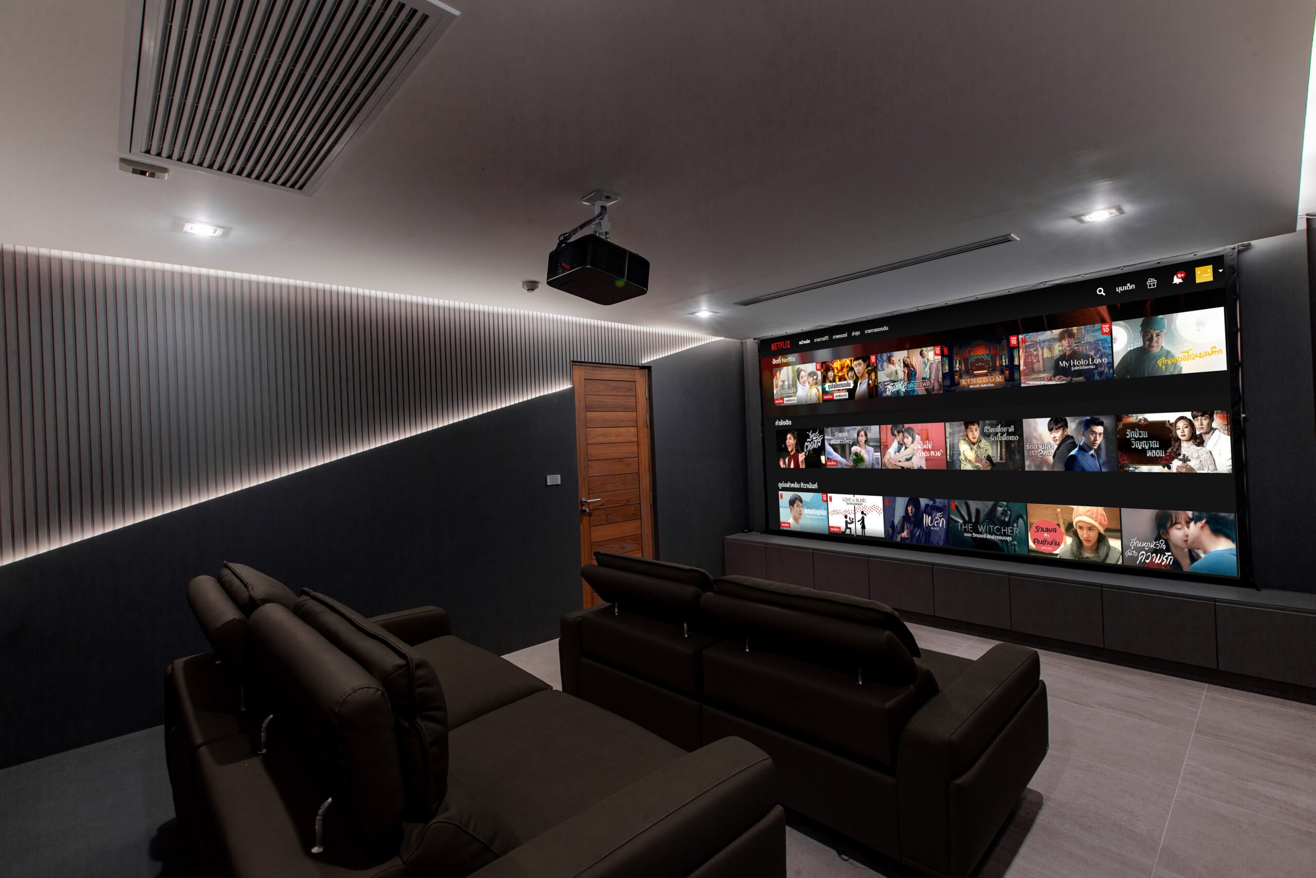 Elevate your stay with our exclusive in-villa Home Theater. Designed for the ultimate entertainment experience, our cinema room features a massive projection screen and a high-quality sound system. Whether you’re catching up on the latest Netflix hits or enjoying a classic movie night with family, our plush seating and cozy ambiance provide the perfect escape after a sunny day in Koh Samui.
